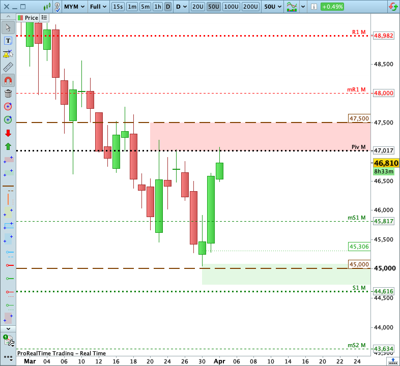 Short sellers still control the situation. They took profits at monthly support 4 and let the market bounce, but the rebound may be running out of steam. I’m still focusing on short trades, but I’m taking profits quickly at key intraday levels until buyers really get trapped in this current rebound (possibly today around the monthly pivot point).