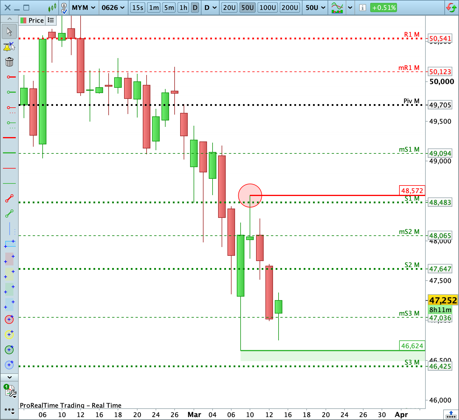 Note: Dow futures contract rollover in effect. I’ve switched to the June expiry, and all price levels from yesterday’s trading plan have been updated accordingly.