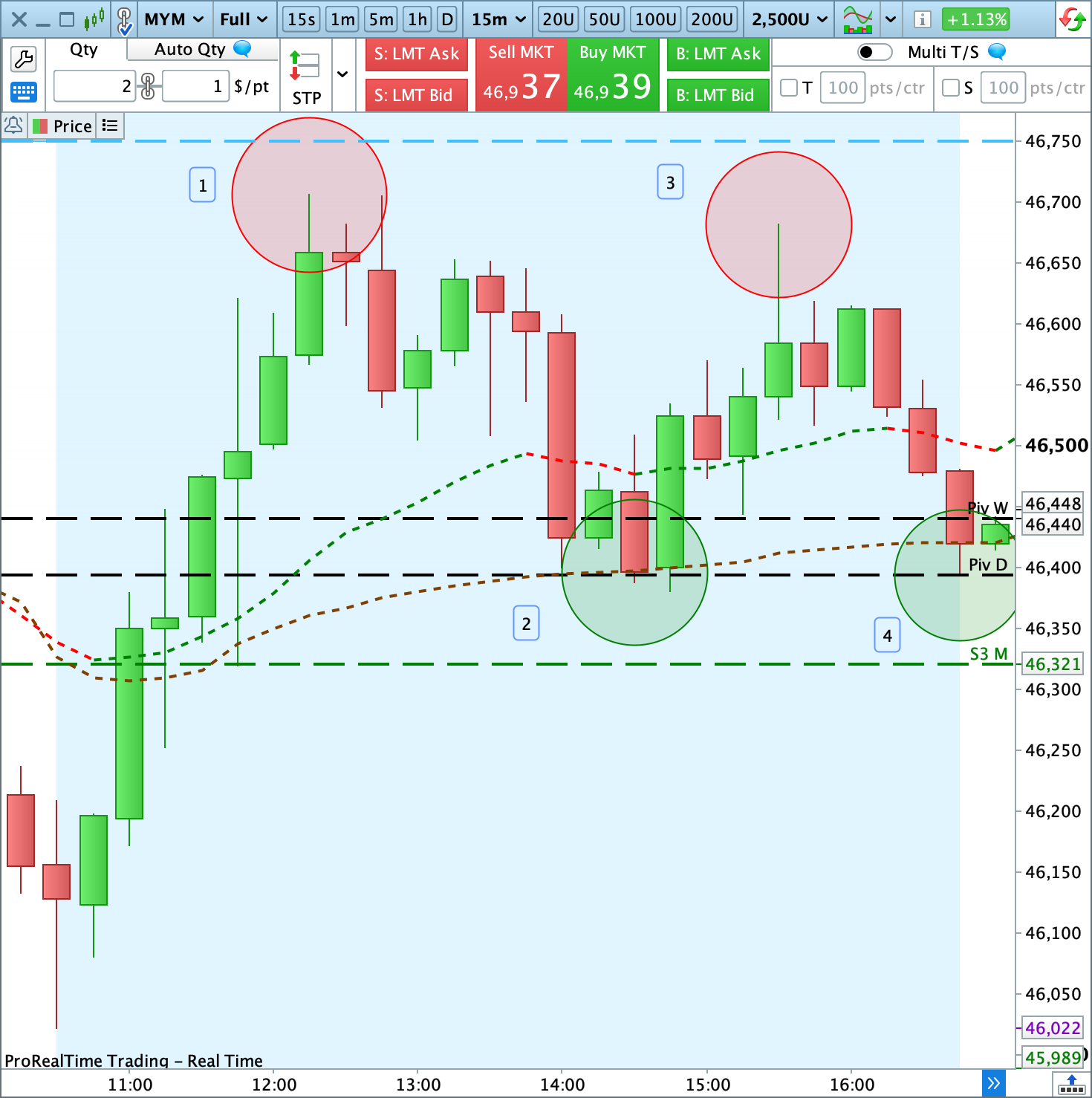 Second half, same story: buyers took another swing at 46,750[3], sellers smacked them down again toward the daily pivot[4].